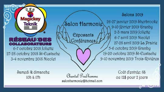 L’Équipe de la Magickey Teknik ® sera présente pour vous présenter, vous faire essayer, vous faire amusez avec tous nos outils de la Magickey Teknik ® en vous offrant des petits soins sur tous vos malaises physiques. Nous serons là pour vous répondre à toutes les questions concernant les formations sur la Magickey Teknik. Venez nous voir !